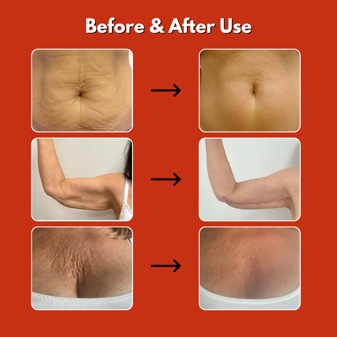 Sagging skin can make you look older than you are. With our Magic Body Oil, you can firm up sagging skin in just 24 hours and regain your youthful appearance. Imagine stepping into your favorite outfit with confidence. Embrace yourself and radiate beauty and elegance!